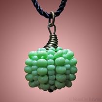 Super cute mint green squash or melon pendant, beadwoven over a round wood bead. Bronze wire was used to make the stem.